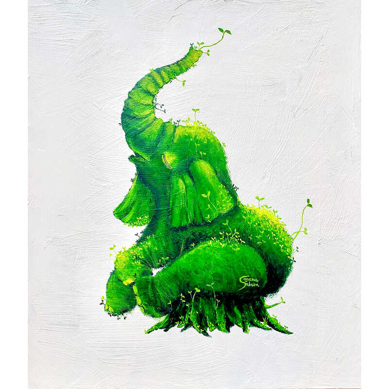 「自然との共存」をテーマにグリーンベースで描く作品は森と生き物が同化した命そのものを表現している。