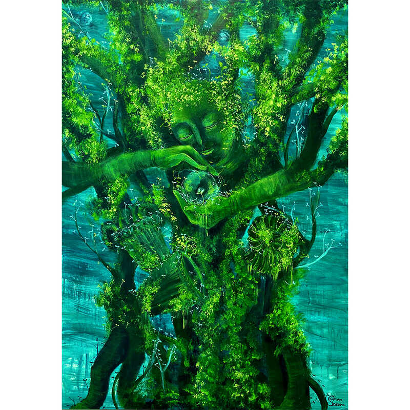 「自然との共存」をテーマにグリーンベースで描く作品は森と生き物が同化した命そのものを表現している。