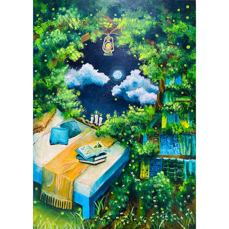 「自然との共存」をテーマにグリーンベースで描く作品は森と生き物が同化した命そのものを表現している。
