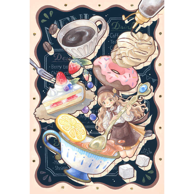 アクリル絵の具をメインに使用し、少女や動物、小物や植物等を好んで描きます。幼少期に憧れた子供目線のファンタジーな世界を作品に落とし込み、どこか懐かしさに浸れるような世界を生み出しています。