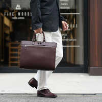前後に設けた一文字のファスナーによる直線基調のデザインは引き締まった印象や信頼感を与え、ビジネススタイルをスタイリッシュに演出します。前後に設けた一文字のファスナーによる直線基調のデザインは引き締まった印象や信頼感を与え、ビジネススタイルをスタイリッシュに演出します。前面と背面が同じデザインとなっており、向きを気にせずさっと持ち出すことができます。現代では一般的な袋縫いのブリーフケースとは異なり、バインダー巻きと呼ばれる、革の端を別パーツでトリミングする手間と技術を要する手法で縫い上げており、これによりダメージを受けやすいエッジ部分を補強するとともに、ブリーフケースにとって重要な自立しやすい構造を実現。また、修理のしやすさなど長く使用した際のメンテナンス性も重視した設計です。上端が細くなるシャープなデザインでありながら、両開きのファスナーを長く採ることにより荷物の出し入れにストレスを感じさせない大きな開口部を実現。ファスナーの両サイドを留めておくギボシと呼ばれる金具がデザインアクセントになっています。内装にはノートPC用パット入りポケットやペンホルダーなどを機能的に配置し、デザインだけではなく使い勝手や収納機能を充実させています。A4ファイルや13インチノートPCをジャストで収納できるコンパクトなサイズは、多数のデジタルガジェットやビジネスツールを整理整頓しながら持ち運ぶことができます。ショルダーストラップが付属する2WAY仕様。