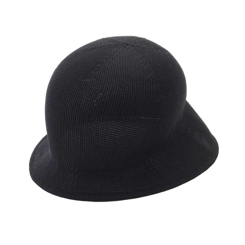 クラウンとつばがシームレスで一体となったハットです。裏地がなく、メッシュ状の網目にすることで通気性に優れています。 つばに前後差があることによって、向きを変えることで様々な被り方を楽しめます。シワになりにくく、持ち運びに便利です。ユニセックスで使うことができます。