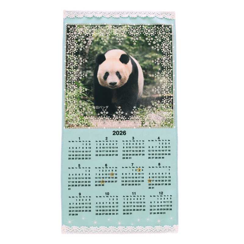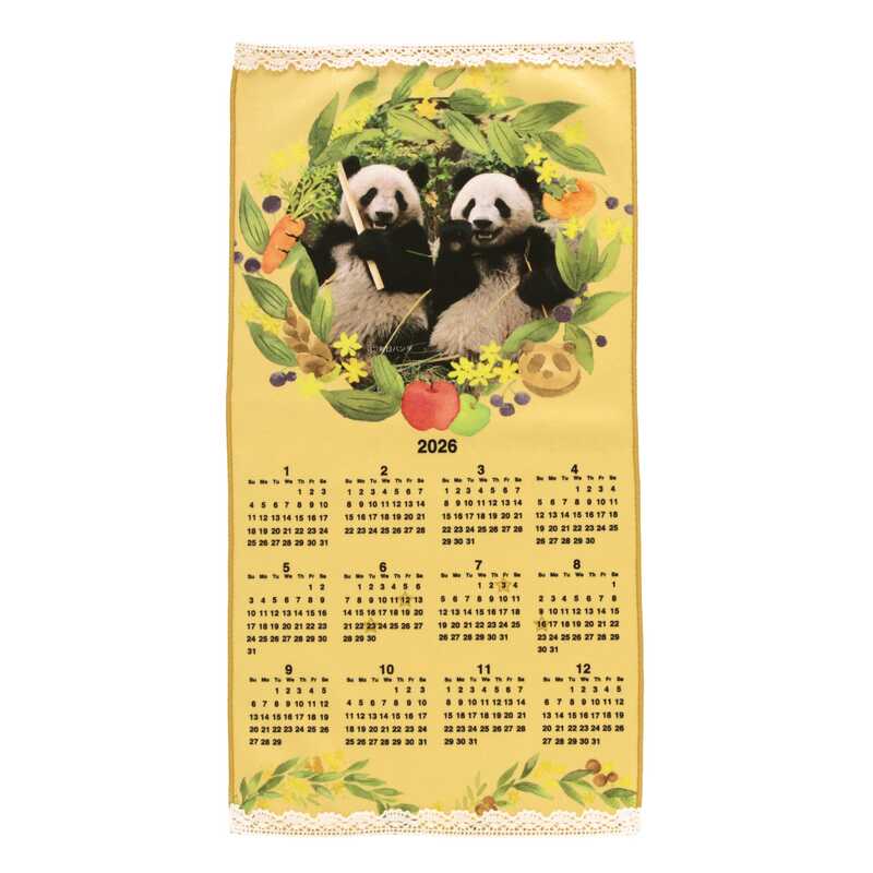 上野パンダファミリーのシャンシャンとシャオシャオ&レイレイの愛らしい姿を2026年カレンダーにしました。上野パンダファミリーの誕生日には☆マークがついているので、大切な日を見逃しません。カレンダーとしてはもちろん、ハンカチとしても使える2WAY仕様です。