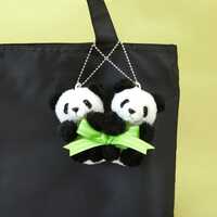 ゴム仕様のリボンでまとまったシャオシャオとレイレイのぬいぐるみです。ぬいぐるみポーチは表面がクリア仕様の為、シャオシャオとレイレイをポーチに入れてお出かけや写真撮影に。